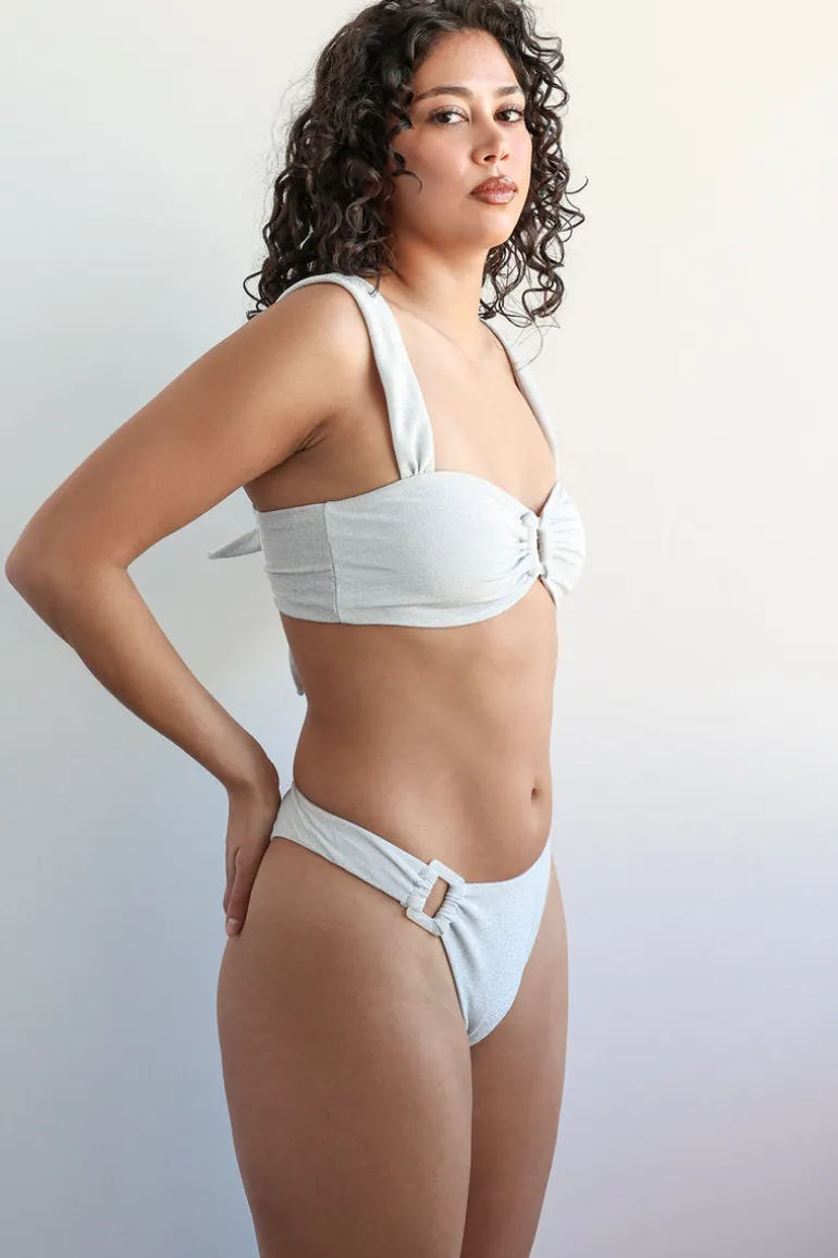 Our new cheeky, high-waisted bikini bottoms designed to flatter your legs to perfection. Featuring cute white hardware on one hip. Pairs well with our matching Lovebird Top.