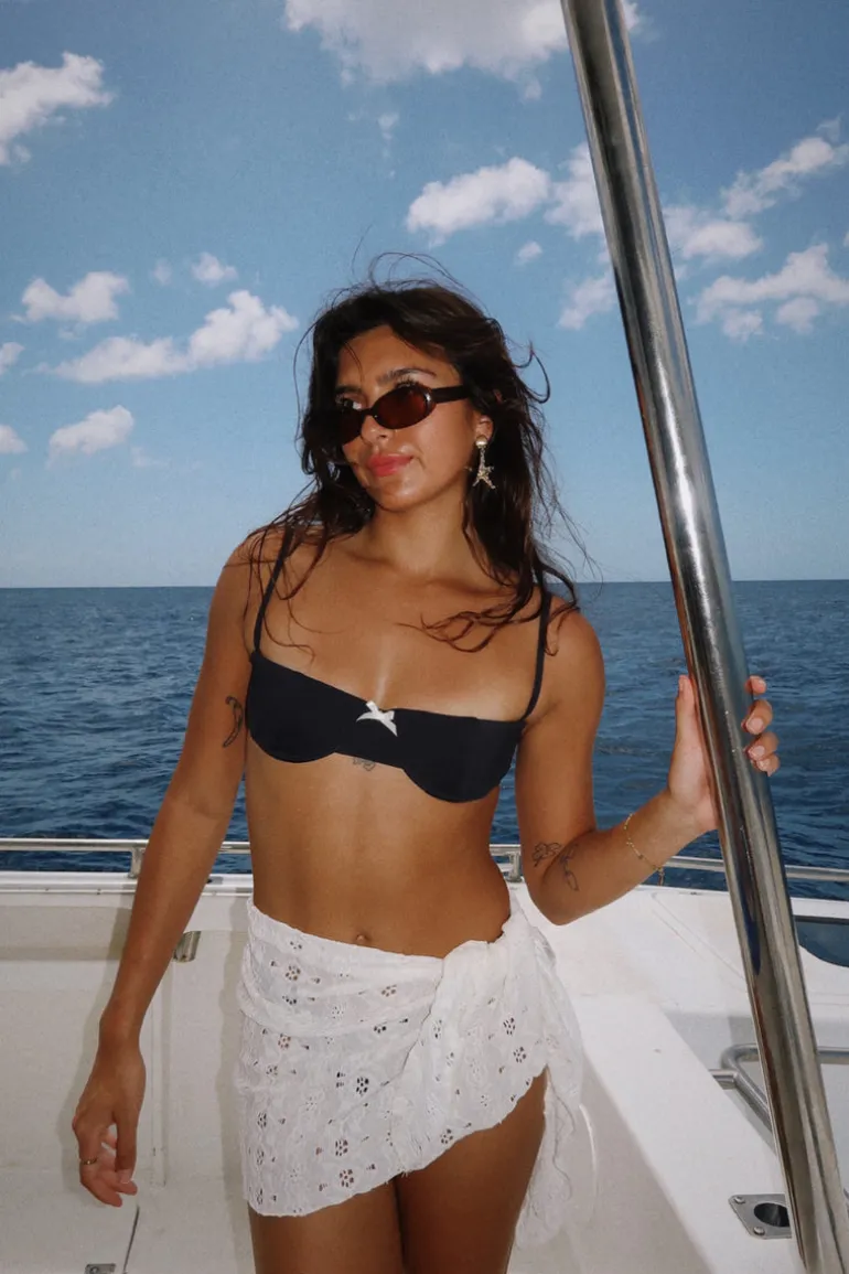 The Feyre Top features a sweetheart neckline, mini bow detail, slender straps and a traditional underwire silhouette. Featuring a back buckle with adjustable straps as well. Pairs perfectly with our Siena Bottom.