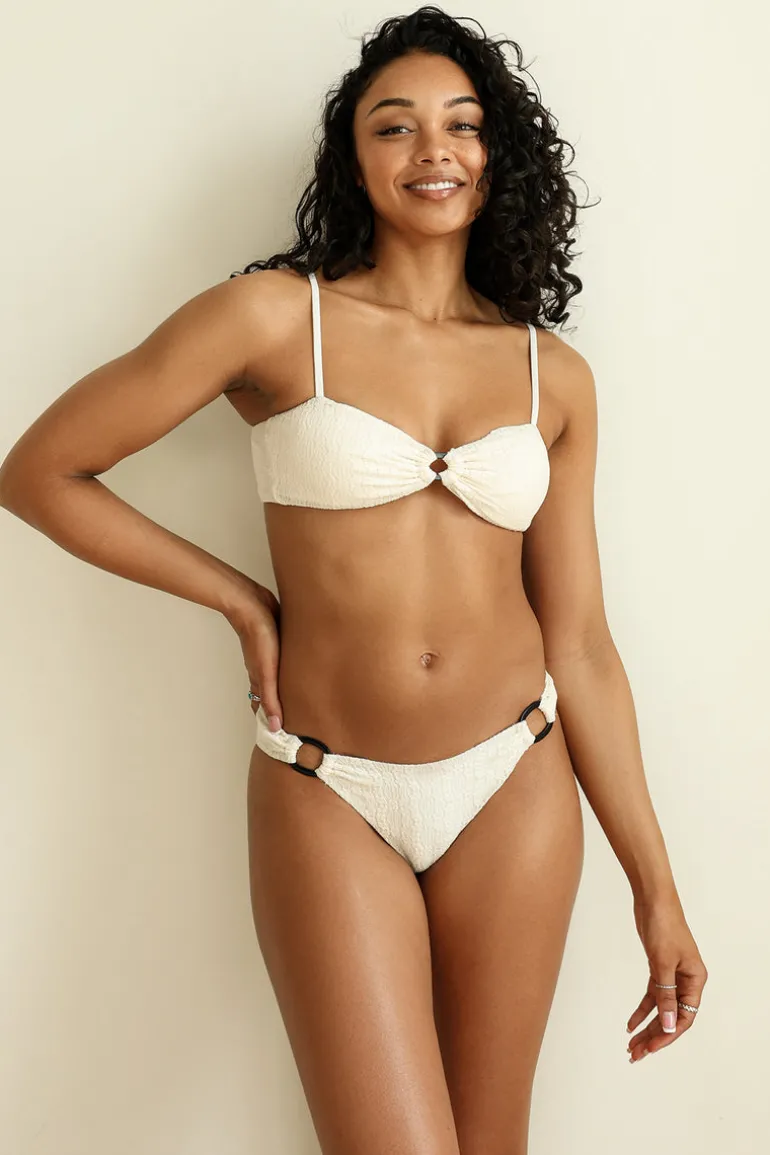 Featuring a v-cut waistline and a ring-shaped hardware on each side, this top is the cutest twist on a classic midrise ‘kini. Pair with our All My Love Top to complete the set.