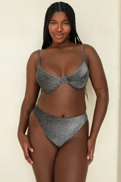 The Sparkle Black Bandeau Cheeky Set was made to turn heads—featuring our hudson top in a fearless bandeau silhouette paired with the angel bottom in a statement-making cheeky cut. Drenched in the vibrant Sparkle Black hue, this set is your go-to for dancing all night and shining all day.