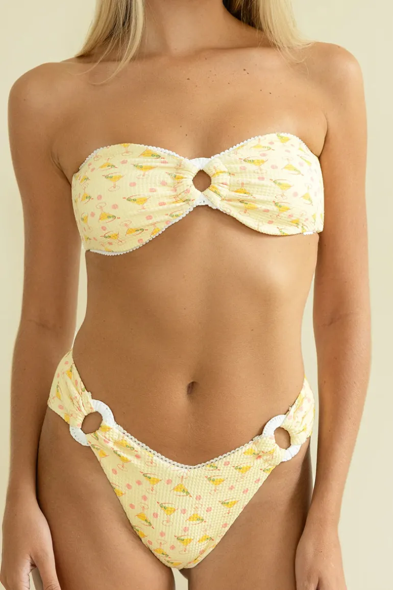 Our Taya Bottom is the perfect cheeky bikini bottom, and it commands attention with its cute double-ring details. Perfect to pair with our matching Lotus Top!