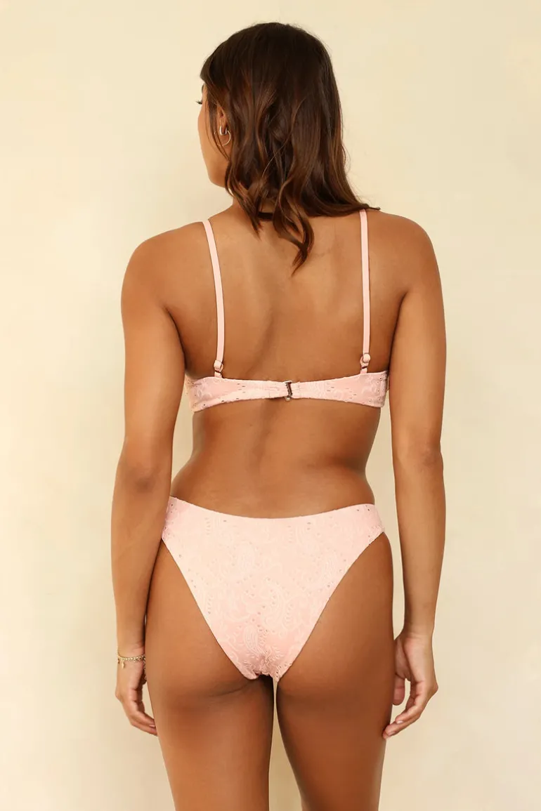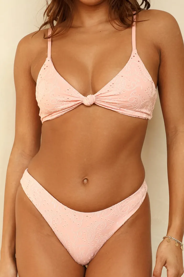 A twist on the classic. The Zen Top features triangle cups, knot detailing at the center, and a new and improved fit to enhance your curves while keeping you fully supported during all your swim sessions. The Zen Top pairs well with our matching Nocturnal Bottom.