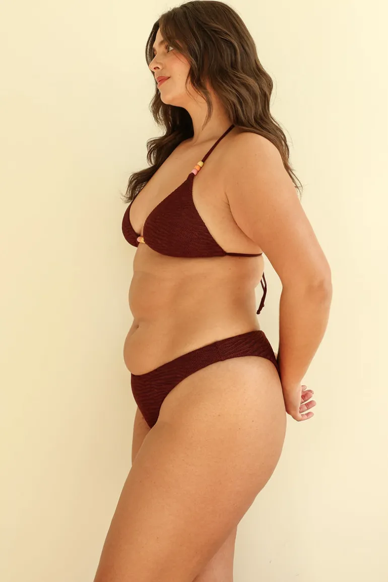 Moderately cheeky and high-cut leg bikini bottoms with a mid-rise waistline. Your next bikini bottom staple. The Nocturnal Bottom is one of our most versatile styles, but pair with our matching Zen or Sunny Top for the perfect new set.