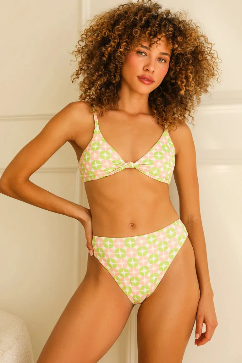 A twist on the classic. The Zen Top features triangle cups, knot detailing at the center, and a new and improved fit to enhance your curves while keeping you fully supported, so you look and feel like the babe you are.